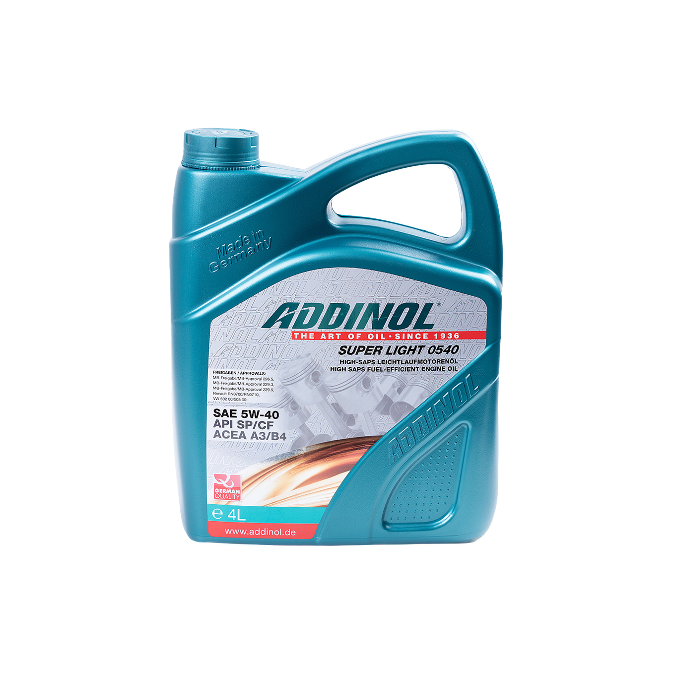 روغن موتور آدینول ADDINOL مدل Super Light 0540 تمام سنتتیک SP/CF گرانروی 5W40 حجم چهار لیتر